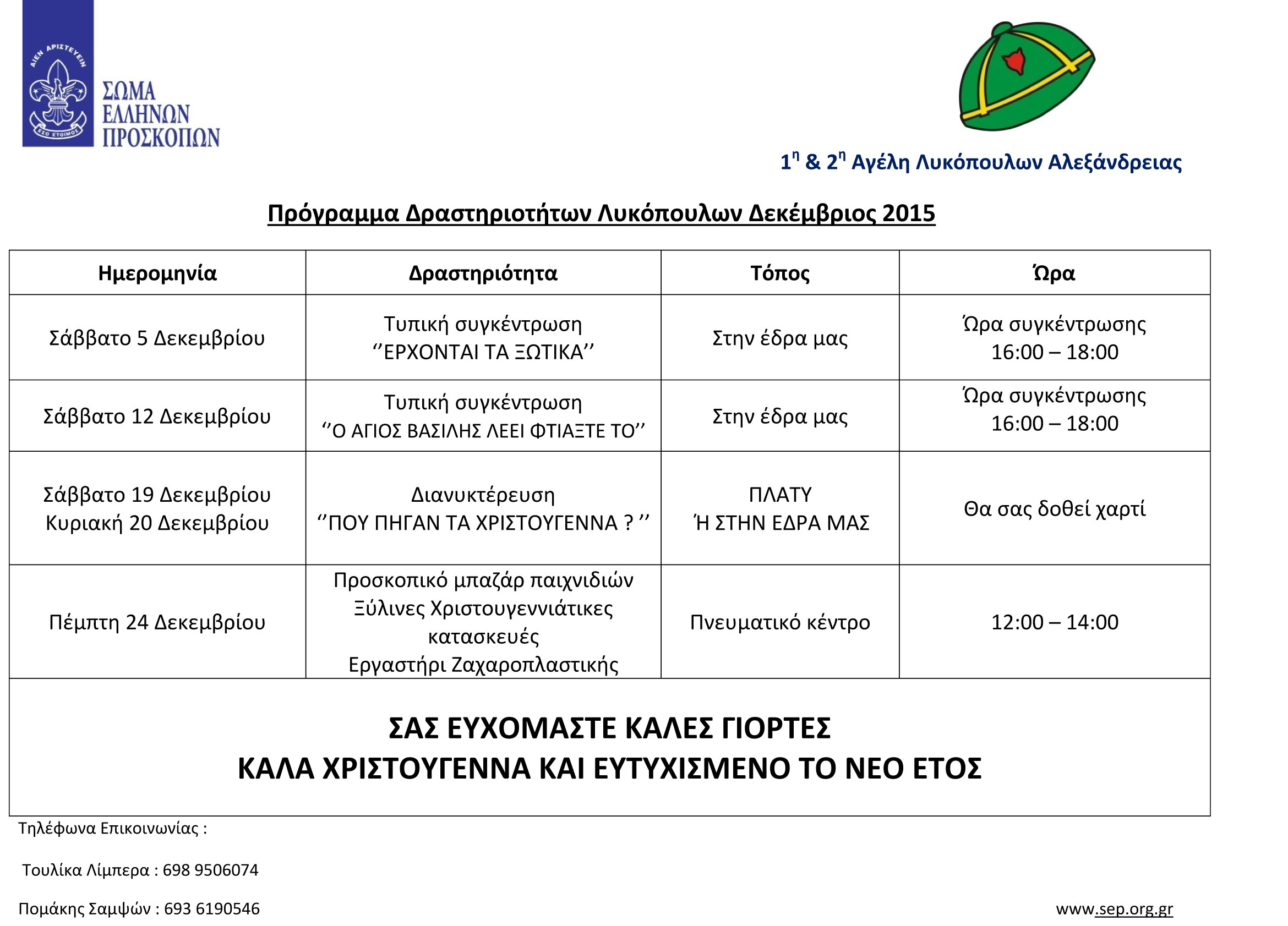 Πρόγραμμα Δραστηριοτήτων Λυκόπουλων Αλεξάνδρειας Δεκέμβριος 2015 6 Δεκεμβρίου 2015 by Πρόσκοποι Αλεξάνδρειας , Πρόσκοποι Ημαθίας No Comment Δείτε το πρόγραμμα κι εδώ. You may also like 03Νοέ20200 Ανακοίνωση Νο87 : Αποτελέσματα Εκδρομής Εξερεύνησης Δάφνης . 06Ιαν20200 2η ομάδα Αεροπροσκόπων Βέροιας & 5η ομάδα Προσκόπων Βέροιας στις γειτονιές της Φυτειάς Ημαθίας 05Ιαν20200 Προσκοπική Ομάδα Διάσωσης Άγριας Ζωής , 3ου Συστήματος Προσκόπων Βέροιας No Comment You can post first response comment. Leave A Comment Πατήστε εδώ για να ακυρώσετε το σχόλιο. Name (required) Email (required) Website Comment... Please enter your name. Please enter an valid email address. Please enter a message. Post Comment Sign me up for the newsletter! PreviousΣυγκέντρωση τροφίμων NextΑΝΑΚΟΙΝΩΣΗ Νο 32 : Ανιχνευτικό Εργαστήρι Γνώσεων