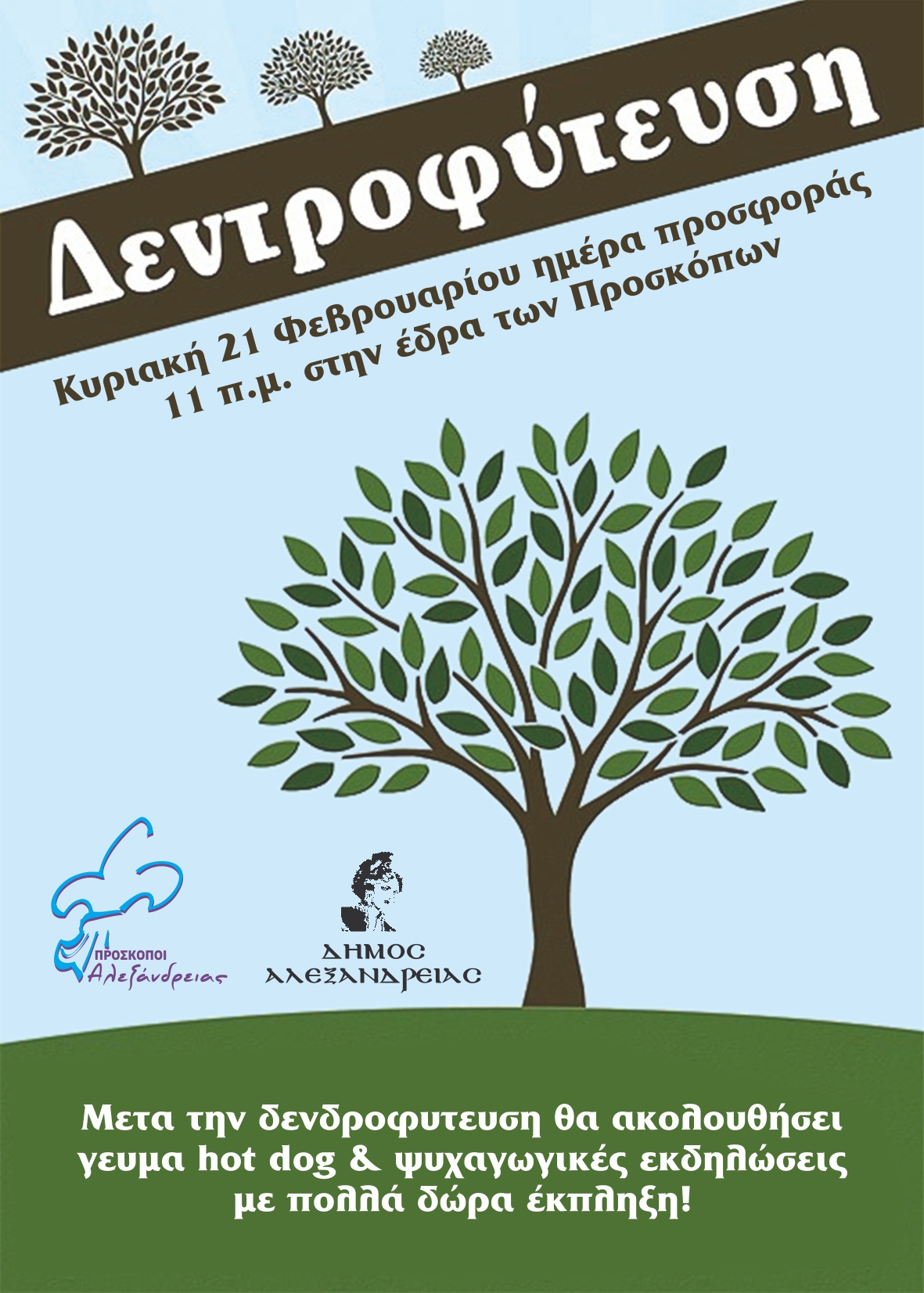Μετά από την πρόσκληση που μας κάνανε, όσον αφορά τη δράση της δεντροφύτευσης που θα πραγματοποιηθεί στα πλαίσια του περιβαλλοντολογικού προγράμματος του Δήμου Αλεξάνδρειας και συγκεκριμένα του Αντιδήμαρχου Τεχνικών έργων κ. Ναλμπάντη Κωνσταντίνου, ως Πρόσκοποι Αλεξάνδρειας αποδεχτήκαμε την πρόσκληση και θα συμμετέχουμε ενεργά με τα μέλη μας στη δράση αυτή.
